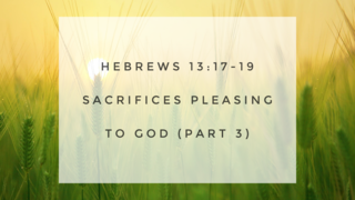 Sacrifices Pleasing to God (Part 3) | Hebrews 13:17-19